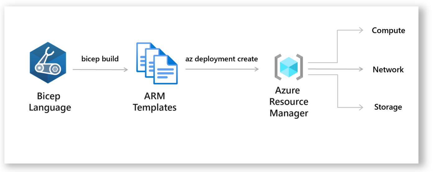 nutzt deklarative Syntax, um Azure Ressourcen / eine bestimmte Cloud-Landschaft zu deployen